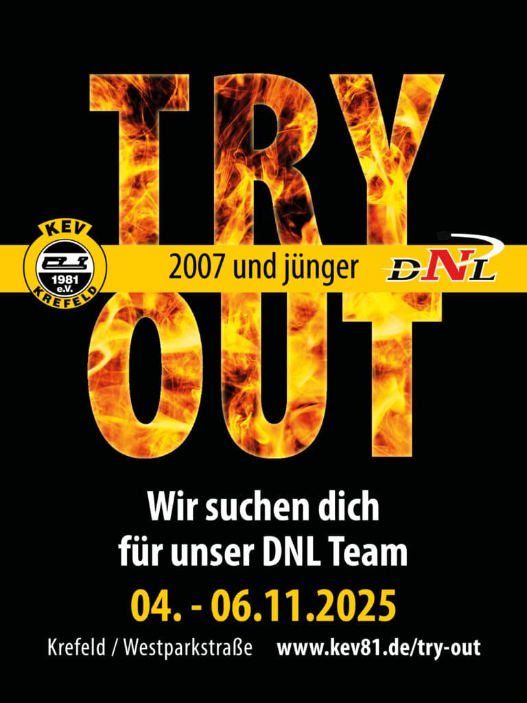 Tryout für das DNL U20-Team des KEV81 – 04. bis 06. November 2025 Der Krefelder Eislauf-Verein 1981 e.V. lädt ambitionierte Nachwuchsspieler der Jahrgänge 2007 und jünger zum Tryout für das