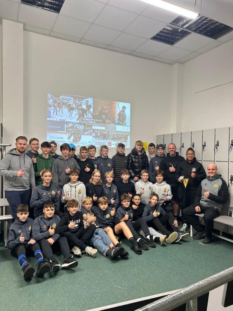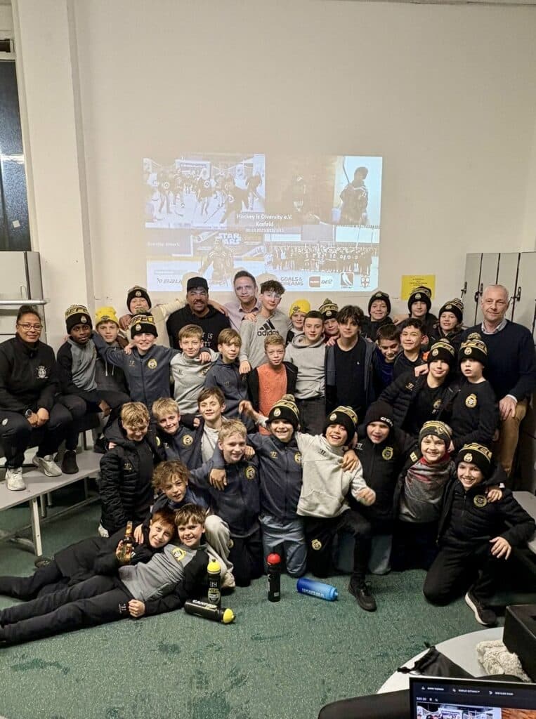 Am 30.10.2025 fand in der Rheinlandhalle Krefeld eine besondere Schulung für unsere U13- und U15-Teams statt – geleitet von Miriam Thimm, ehemalige Nationalspielerin und Botschafterin von Hockey is Diversity e.V., unterstützt von Emanuel Beckford.