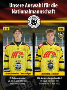 Starke Nachrichten für den KEV81: Jannes Schreiber wurde für das U18-Nationalteam nominiert und reist vom 25.–30.12. zum 5-Nationen-Turnier nach Zuchwil. Tim Schütz erhält die Berufung