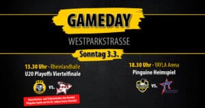 🚨 GAMEDAY Westparkstraße! 🚨 Am Sonntag, den 03.03.2024, steht ein großartiger Eishockey-Sonntag auf der Westparkstraße an! Um 13:30 Uhr geht’s los in der Rheinlandhalle mit